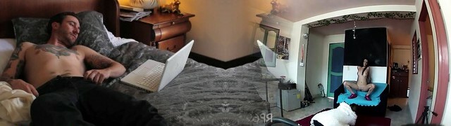 Tattooed lad Bailey Summers uses dildo during an interview