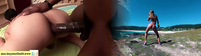 young white ballet dancer gets split in two by thick raw dark-hued cock