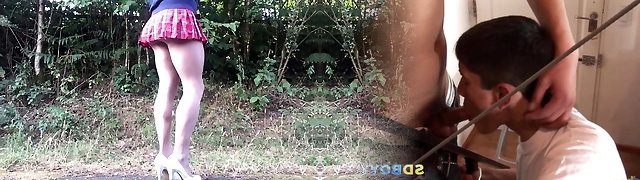 Amateur twink sucks chisel outdoors