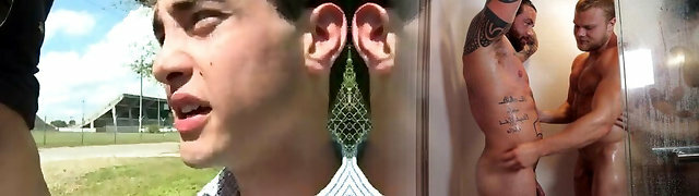 Nude men with erections in public showers