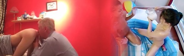 Old dude playing with teen cocks