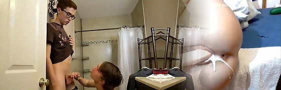 Cum-Thirsty Teen Boy makes me cum for the 4th time and Swallows his Dinner