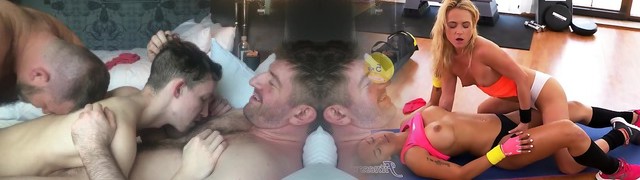 Colby and Mickey welcome handsome twunk Levi Hatter in live bareback fuck