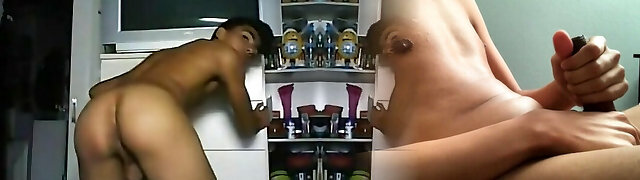 Shameless twink boyfriend exposes his cock-squeezing butt
