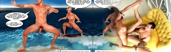 Hawaii Queens Surf Beach 3D Homosexual Animated Comics