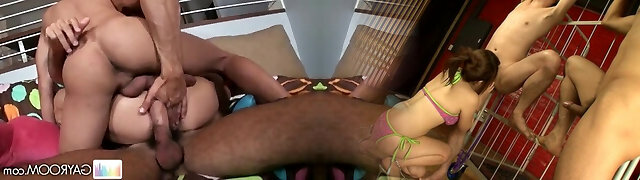 Four twinks enjoy gay group sex party
