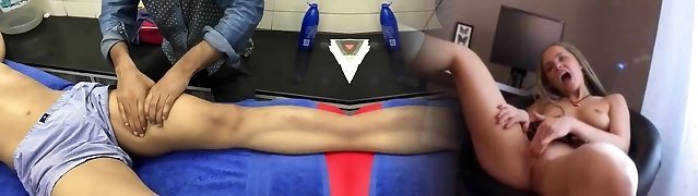 Young teen girl gets massaged by hot hunk