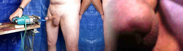 dude uses fuckingmachine with several massive dildos