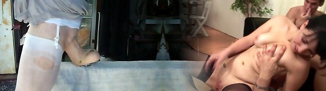 Playing with chastity, estim, undies, stockings, dildo