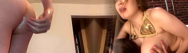 Asian Cross dresser having a dildo up his ass