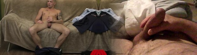 Tattooed military guy working on his long hard beefstick