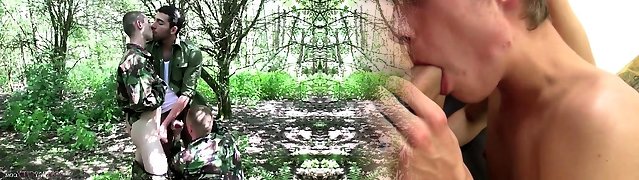 Monster Dicked Military Men Fellate Cock Outdoors